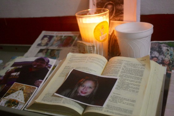 Doña Carmen enciende una veladora frente a la fotografía de su hija sonriendo, realiza lecturas bíblicas, pregunta si hay noticias a sus conocidos, pero la respuesta es la misma multiplicada por cinco. Doña Carmen tiembla de sus manos, se levanta de momento, rasca su cabeza, está impaciente.