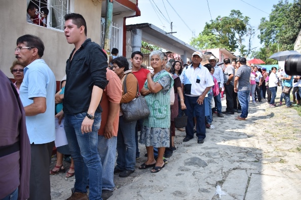 Así avanza el tiempo y de a poco la hilera. El sol raya los 35 grados, a las diez de la mañana, en la colonia Benito Juárez, uno de los sectores más pobres en Xalapa, Veracruz. Ni los organizadores, ni los presentes, evidencian una simpatía política. No obstante, lo que predomina en las paredes de la privada Jazmín, es la propaganda del Movimiento Cardenista, uno de los partidos que integran la coalición “Para mejorar Veracruz”, liderado por el Partido Revolucionario Institucional, (PRI).