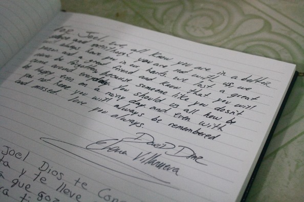Comparte la mujer, mientras se aferra a un dedicatorio que escribieron compañeros migrantes de Joel Rayón. Frases, mitad inglés, mitad español, que sin bien presentan errores ortográficos van cargados de amistad, asegura doña Rufina, a quien le fue entregado el cuadernillo.