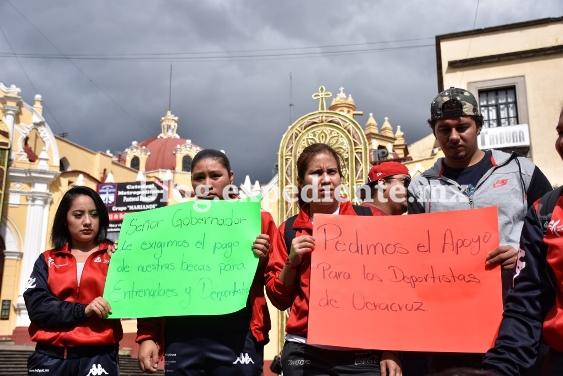 Hace unos años, en 2011, Omar Osorio Salazar festejaba sobre un podio su medalla de bronce en Guadalajara, Jalisco. Hoy, el atleta paralímpico se apoya del primer escalón de la Plaza Lerdo, en Xalapa, para exigir al gobierno de Veracruz el pago inmediato de 10 millones de pesos en favor de 500 deportistas y entrenadores.