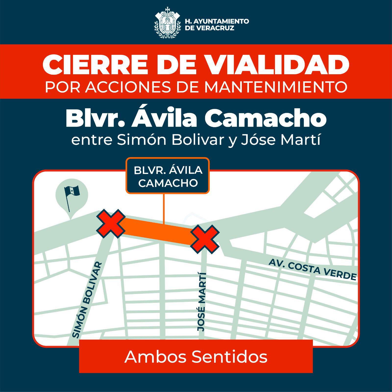 El Ayuntamiento de Veracruz informa a la ciudadanía que, a partir de hoy, debido a labores de mantenimiento, permanecerá cerrado el Bulevar Manuel Ávila Camacho,...