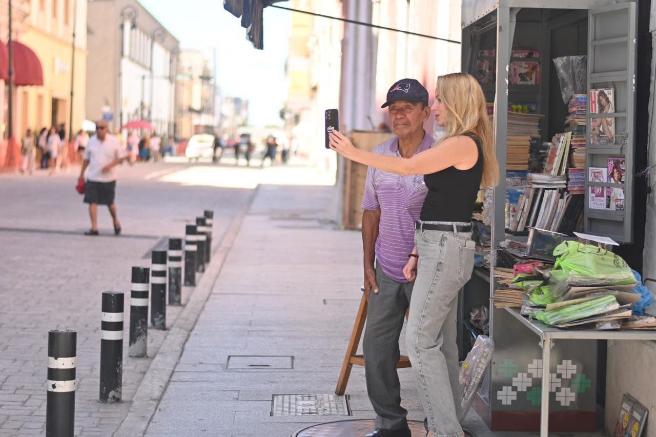 Durante su recorrido por el Zócalo, Paty Lobeira conversó con el propietario del tradicional estanquillo “El Chino”, quien expresó su agradecimiento al recibir su nuevo puesto, después de 30 años de servicio con la misma estructura.