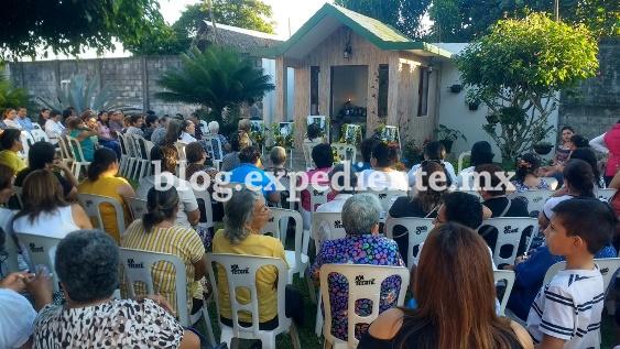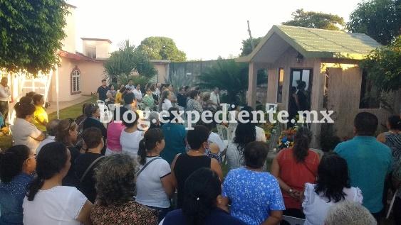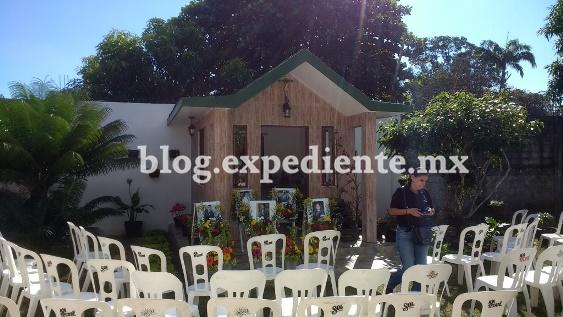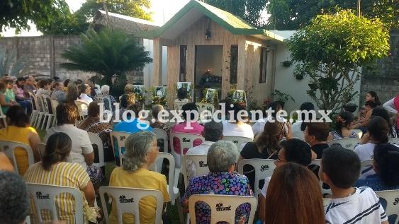 Frente a la capilla, hay numerosas sillas y las fotos de los cinco ausentes físicamente. La familia Benítez Arróniz está a la espera de más invitados, pues se hará un rezo antes de la misa de la 7:00 PM. A las cinco y media, ya no cabía nadie más. Mujeres en su mayoría, algunas no dudan en mostrar lágrimas al oír las peticiones de la rezandera. "Señor, con esta oración te pedimos paz, resignación para sus amados, y pedimos por el descanso eterno del alma de esos muchachos. También estamos a la espera de justicia", dijo la encargada de los rezos, y pasó lista pidiendo un Avemaría: