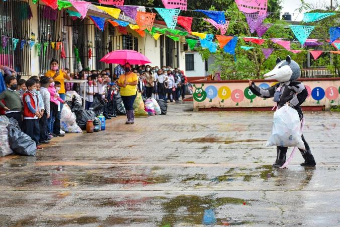 El pasado viernes, un total de 295 niños de la primaria turno matutino ubicada en la colonia Rafael Hernández Ochoa, participaron en el “Concurso de Reciclado”, recolectando 410 kilogramos de plástico; 192 kilos de cartón; 24 kilos de latas de aluminio; 116 kilos de archivo y 60 litros de aceite quemado de cocina, destinando los recursos de la venta del material a mejoras de la escuela.