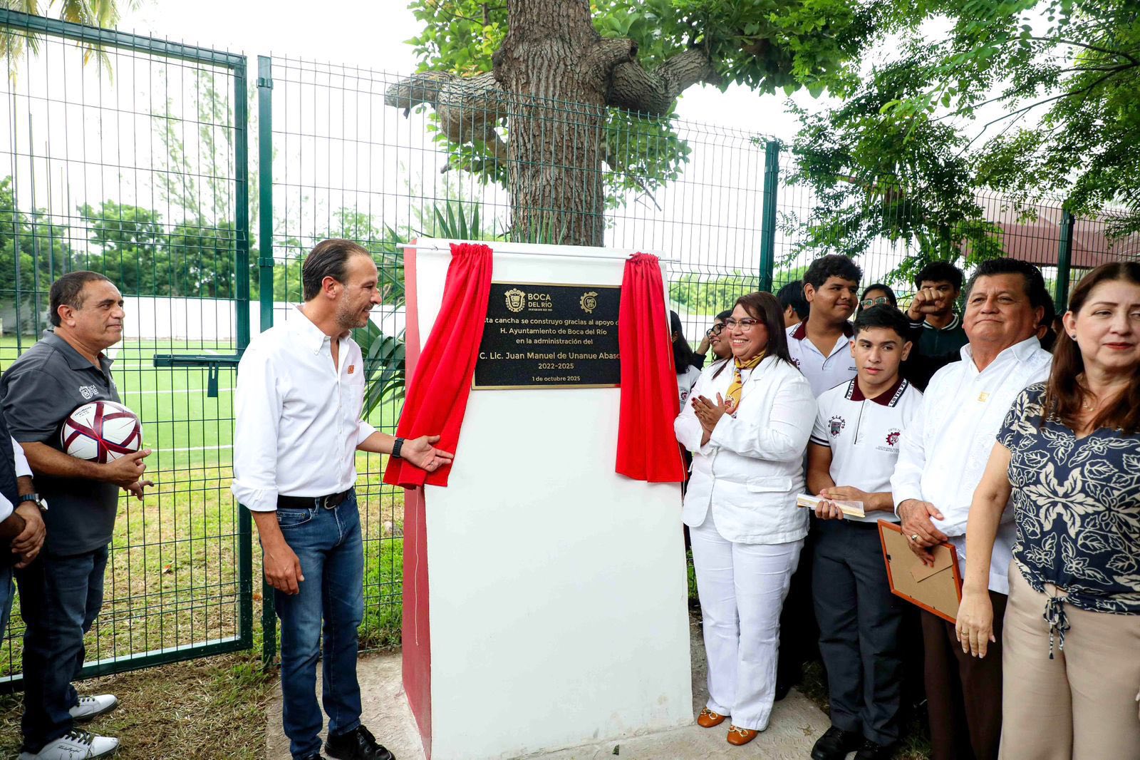 • El Presidente Municipal de Boca del Río, Juan Manuel Unánue Abascal, inauguró la nueva cancha de fútbol con pasto sintético en el Centro de Bachillerato Tecnológico Industrial y de Servicios (CBTIS) 79