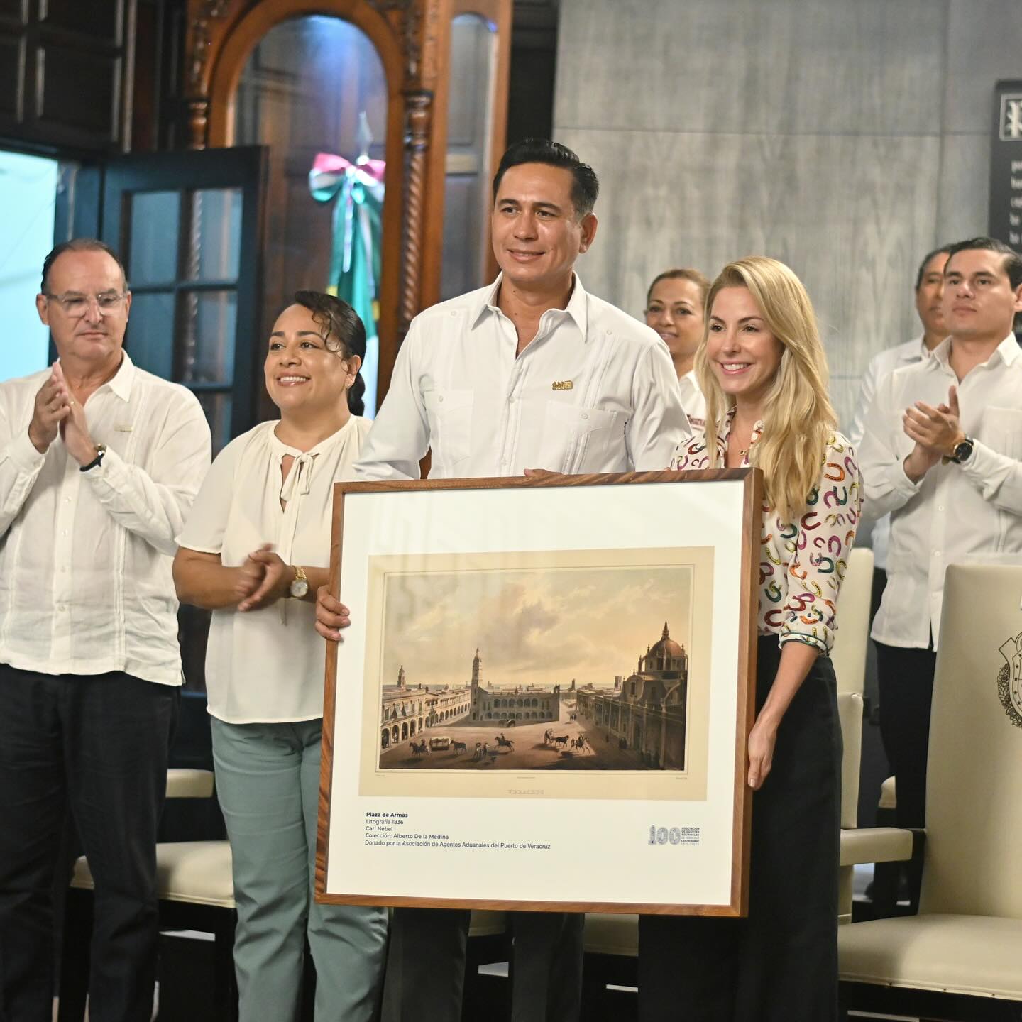 Asimismo, Paty Lobeira reconoció las actividades realizadas durante este año conmemorativo, como la emisión de una estampilla postal y la exposición fotográfica “Veracruz, Primer Puerto Global”, que muestran la evolución y legado del sector aduanal en la ciudad.