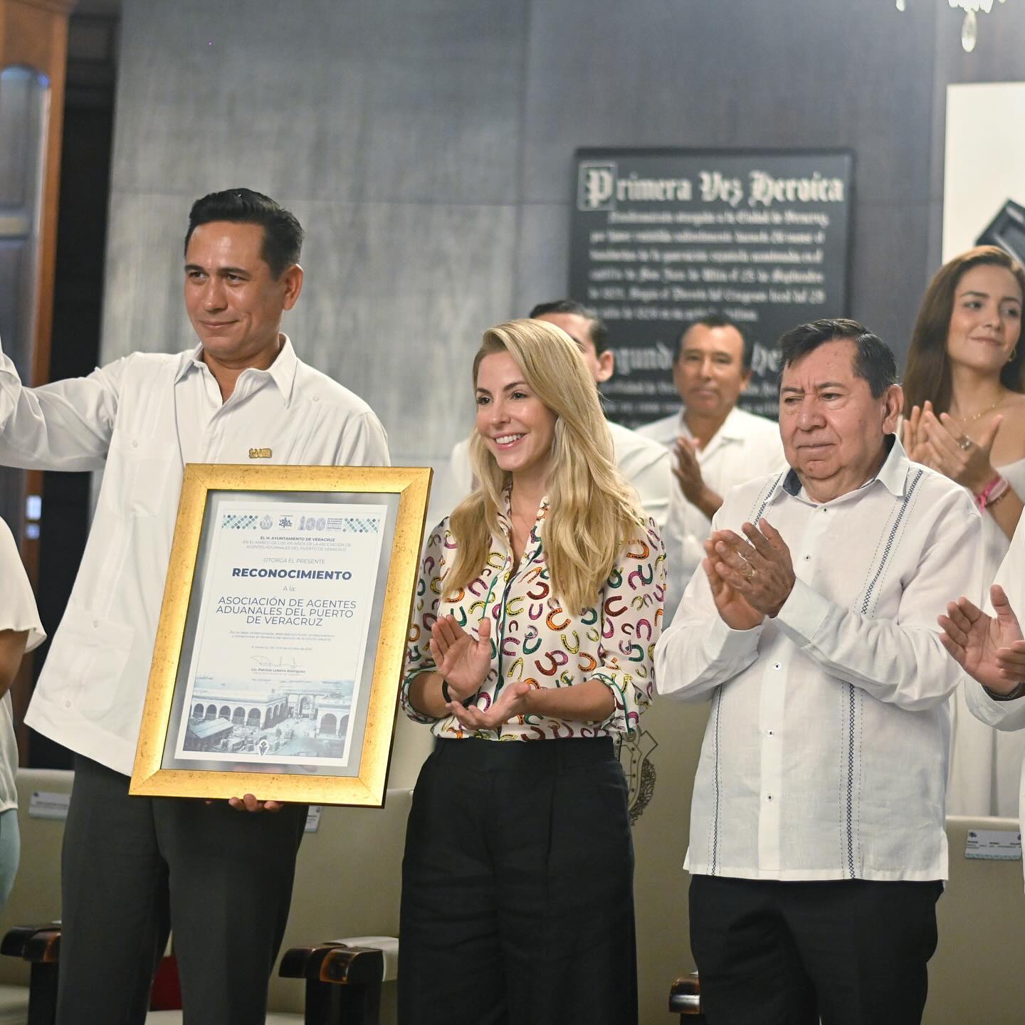 En su mensaje, la alcaldesa destacó la relevancia histórica y económica de la Asociación, fundada el 10 de octubre de 1925, la cual ha sido pieza clave en el desarrollo logístico y en el fortalecimiento del comercio exterior en Veracruz.