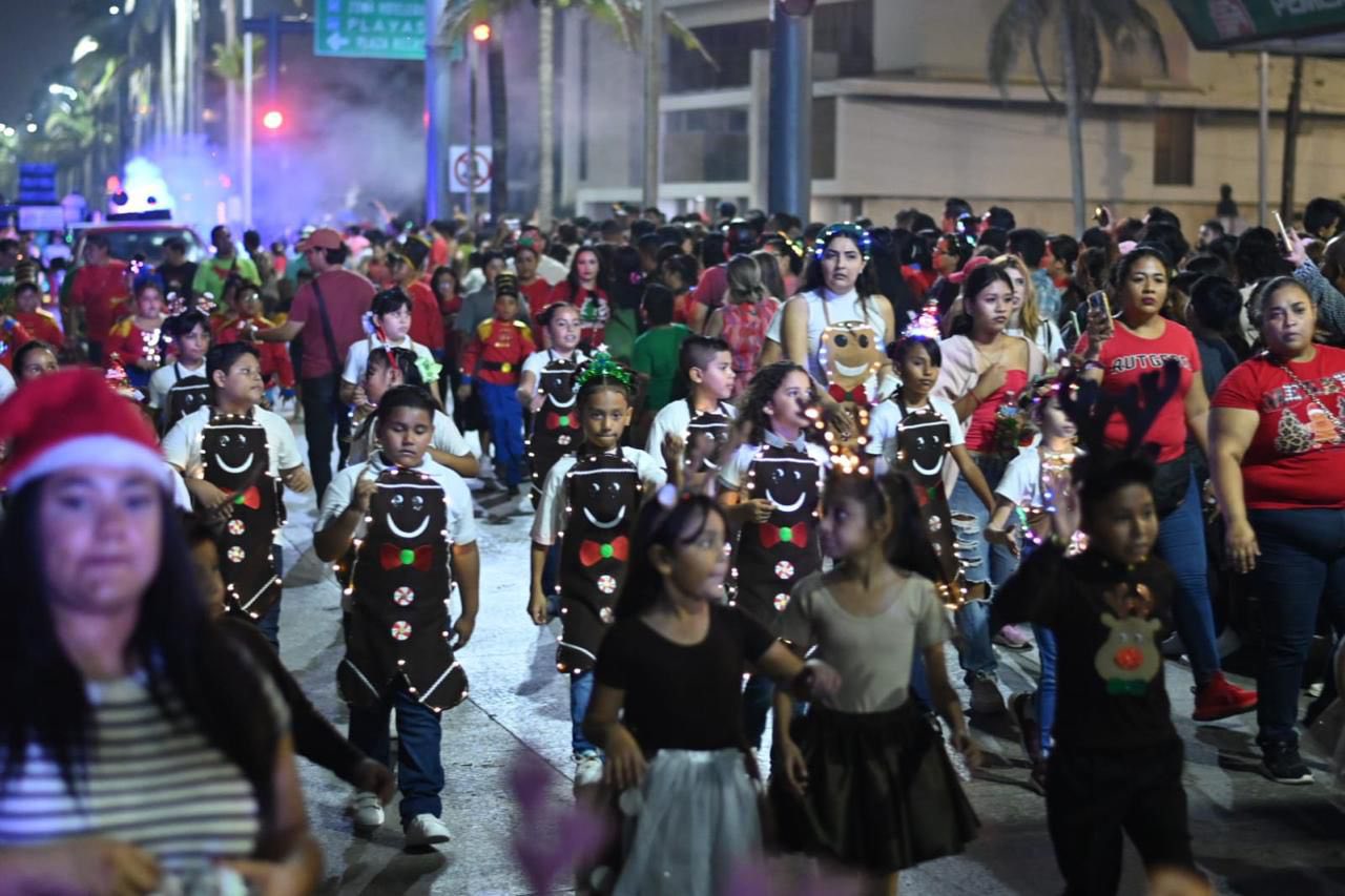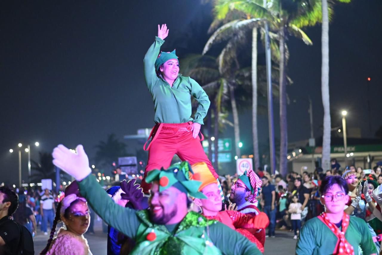 Los carros alegóricos presentaron diseños con temas tradicionales de Navidad, y algunos grupos de participantes desfilaron cantando “La Rama” y “El Viejo”, algo muy representativo del puerto de Veracruz, lo que atrajo la atención de niñas, niños y adultos.